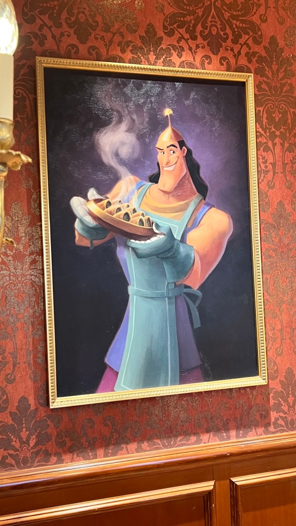 Behind the buffet there was lots of art of “chefs” from Disney including Tiana and her dad, but also the fairies from Sleeping Beauty and my favourite, Kronk looking suitably proud of his spinach puffs!